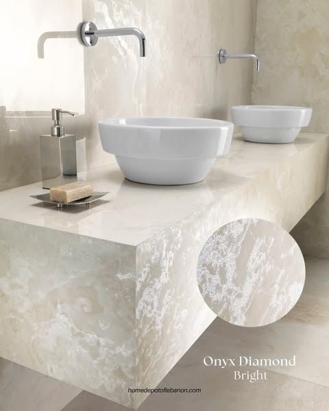 Bright Onyx Diamond – timeless ivory with delicate veining, bringing light, purity, and refined elegance to any space.